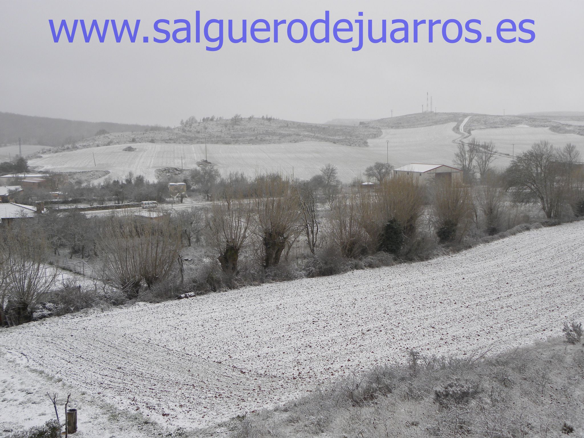 Desde las esquina del pinar hacia el pueblo. Todo nevado